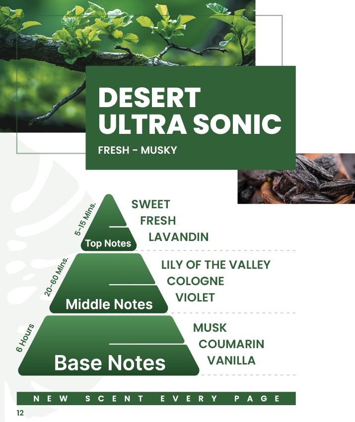 Introducing Desert Ultra Sonic Aroma Oil from Scentabook, a captivating blend that transports you to vast, sun-kissed landscapes with its fresh and musky notes. Immerse yourself in the invigorating aroma reminiscent of desert breezes, while subtle hints of musk add depth and allure. Indulge in the harmonious balance of freshness and sophistication with Desert Ultra Sonic Aroma Oil, a fragrance that evokes the wild beauty of untouched landscapes.