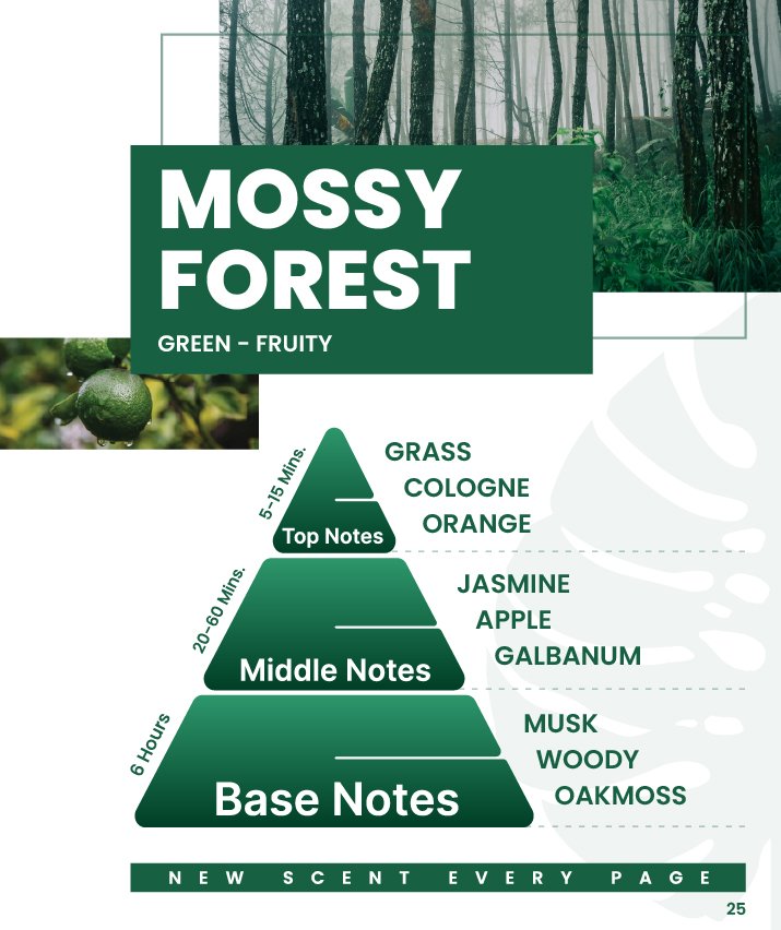 - Mood enhancement: The fruity and green fragrance of Mossy Forest can uplift your mood and create a sense of rejuvenation and positivity.